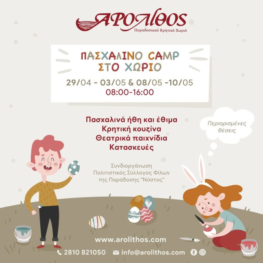 Ο Αρόλιθος Κρητικό Χωριό / Arolithos Traditional Cretan Village ετοίμασε για εσάς ένα πλούσιο πρόγραμμα απασχόλησης για τη περίοδο των διακοπών σας το Πάσχα και θα είναι μεγάλη τους χαρά να είστε κοντά τους.