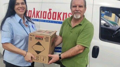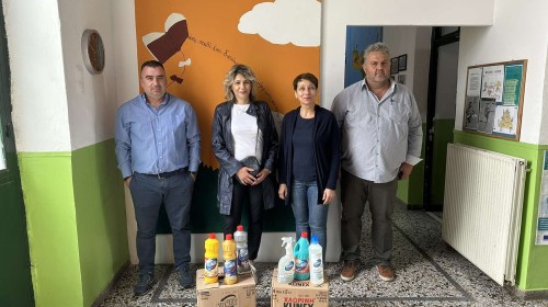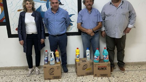 Ειδικότερα, έπειτα από πρωτοβουλία των Super Markets Χαλκιαδάκης, παραδόθηκαν στους υπευθύνους των σχολείων καθαριστικά Klinex (χλωρίνες, πολυκαθαριστικά, υγρά πατώματος και επιφανειών), τα οποία θα καλύψουν τις άμεσες ανάγκες των σχολείων. Τα προϊόντα παρέλαβαν από τον εκπρόσωπο της Ελαϊς- Unilever κ. Κώστα Ρουμπάκη και την εκπρόσωπο της Χαλκιαδάκη Α.Ε. κ. Βιβή Ξυπάκη οι Δ/ντες των σχολείων σε: