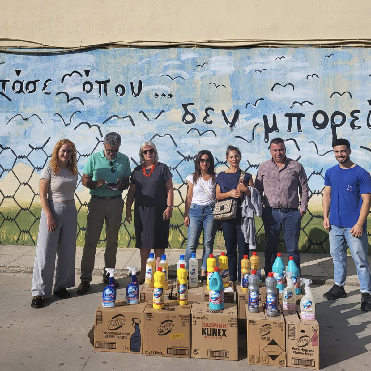 Ειδικότερα, έπειτα από πρωτοβουλία των Super Markets Χαλκιαδάκης, παραδόθηκαν στους υπευθύνους των σχολείων καθαριστικά Klinex (χλωρίνες, πολυκαθαριστικά, υγρά πατώματος και επιφανειών), τα οποία θα καλύψουν τις άμεσες ανάγκες των σχολείων. Τα προϊόντα παρέλαβαν από τον εκπρόσωπο της Ελαϊς- Unilever κ. Κώστα Ρουμπάκη και την εκπρόσωπο της Χαλκιαδάκη Α.Ε. κ. Βιβή Ξυπάκη οι Δ/ντες των σχολείων σε:
